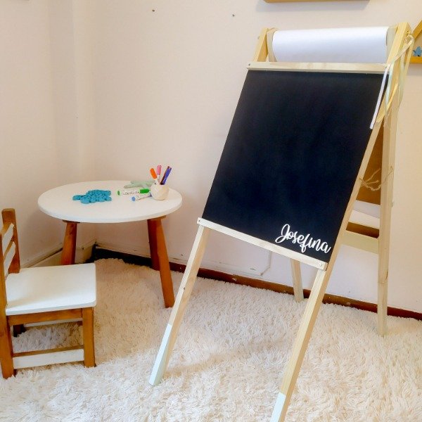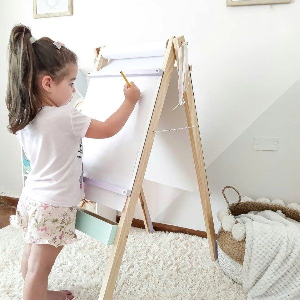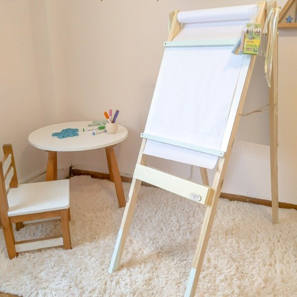 Este versátil atril de madera es el centro de arte y aprendizaje perfecto para la habitación de tus hijos o tu sala de juegos. Diseñado para fomentar la imaginación y la motricidad fina, ofrece tres superficies de trabajo en un solo mueble robusto y fácil de usar:
